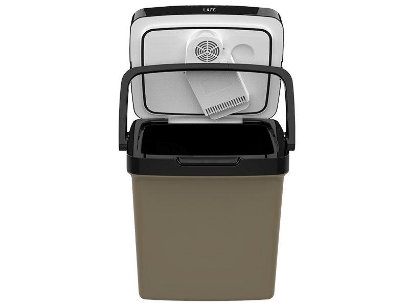 Urządzenie zostało wyposażone w cyfrowy wyświetlacz oraz panel sterowania z czterema przyciskami, które umożliwiają szybkie ustawienie odpowiedniego trybu pracy. Dodatkowym udogodnieniem jest port USB 5V – lodówka może pełnić funkcję powerbanku, pozwalając na ładowanie telefonu czy innego urządzenia mobilnego.